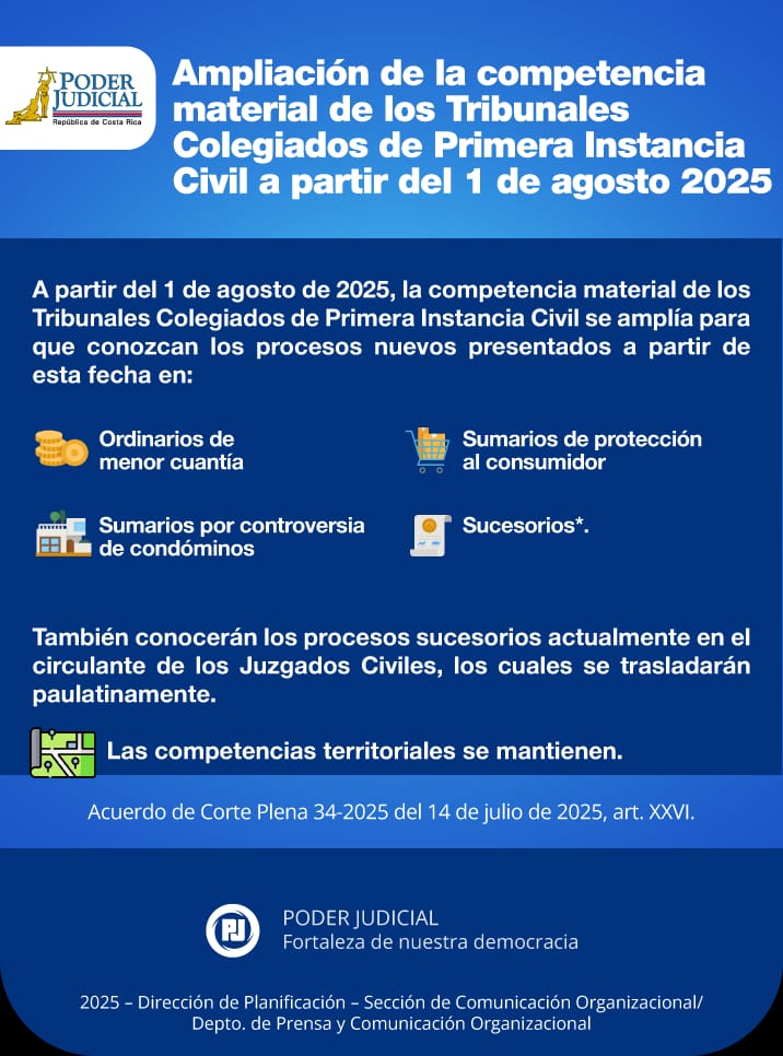 El Consejo Superior del Poder Judicial en sesión N° 4-2023 celebrada el 19 de enero del 2023, artículo LXI, dispuso aprobar la propuesta de circular presentada por la Comisión de la Jurisdicción Civil para instar a los Despachos Civiles y Cobratorios a sumarse al modelo de gestión de oficina que ofrece GICA Justicia con el objeto de mejorar la calidad del servicio que ofrece la Jurisdicción Civil en general.